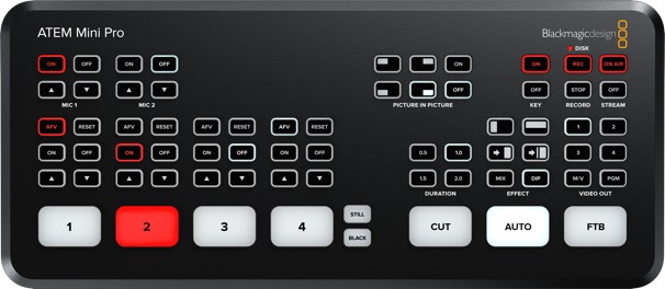 Bàn trộn hình ảnh Blackmagic Atem Mini Pro ghi trực tiếp dữ liệu vào đĩa flash USB với H.264, phát trực tiếp trực tiếp qua Ethernet và multiview mới để giám sát tất cả các máy quay.ATEM Mini Pro hỗ trợ nhiều đĩa khi được sử dụng với bộ chia USB hoặc Blackmagic MultiDock, vì vậy khi đĩa này đã đầy có thể ghi tiếp sang đĩa thứ hai liên tục. Cài đặt bản ghi và lựa chọn đĩa được thiết lập trong ATEM Software Control và có chế độ xem trạng thái bản ghi trong phần đa tích hợp. Bạn thậm chí có thể kích hoạt ghi âm trên Blackmagic Pocket Cinema Camera!