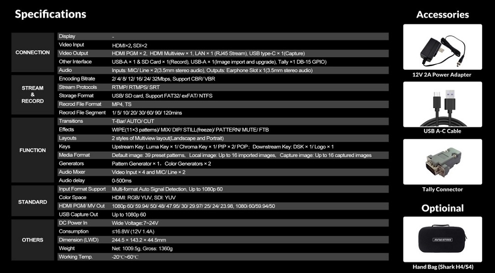 Bàn trộn hình ảnh Shark S4 4 kênh ( 2 SDI & 2 HDM)