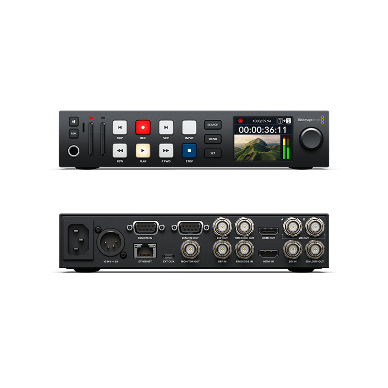 Bộ ghi Video HyperDeck Studio HD Plus có haikhe cắm thẻ SD cho phép bạn chụp với thời gian ghi hầu như không giới hạn và thiết bị cũng hỗ trợ ghi vào đĩa USB thông qua cổng đầu ra USB Type-C. HyperDeck Studio HD Plus có nút điều khiển ở bảng điều khiển phía trước và bánh xe chạy / con thoi cho cảm giác cọ rửa tương tự. Điều khiển RS-422 được hỗ trợ cho điều khiển bên ngoài và bạn cũng có thể điều khiển thiết bị bằng cổng USB hoặc qua Ethernet ở tốc độ 1G để điều khiển boong nhanh hơn và truyền tệp qua đầu nối RJ45. Một màn hình LCD tích hợp trên bảng điều khiển phía trước cho phép bạn theo dõi video.