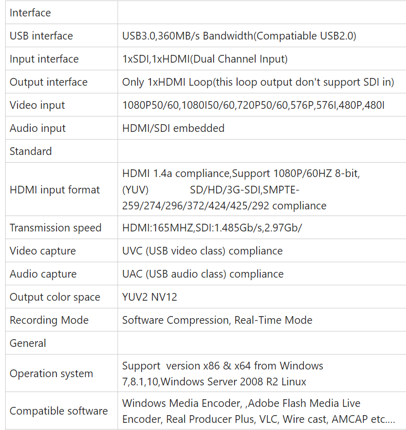 Phần mềm tương thích : Windows Media Encoder ,, Adobe Flash Media Live Encoder, Real Producer Plus, VLC, Wire cast, AMCAP, v.v.