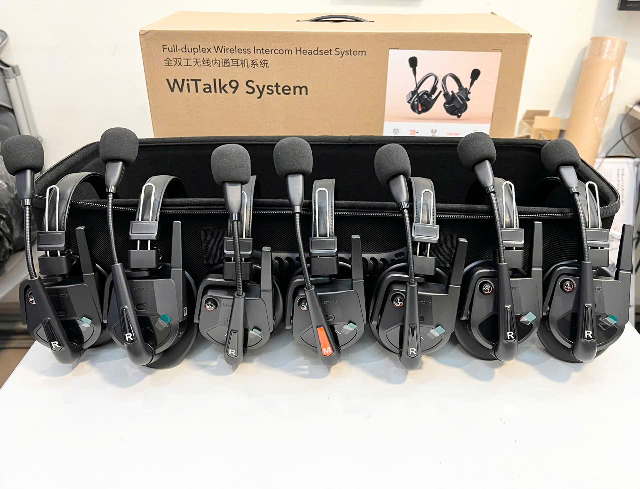 WiTalk9-7S là hệ thống liên lạc nội bộ không dây full-duplex xa tới 500M, gồm 1 tai nghe Master + 6 tai nghe Remote, 14 pin sạc và một trạm sạc 10 ngăn.Có chống ồn chủ động ENC , khả năng mở rộng tới 30 người và có ứng dụng Saramonic Master theo dõi mức pin, kiểm tra trạng thái người dùng, tắt tiếng của các thành viên.