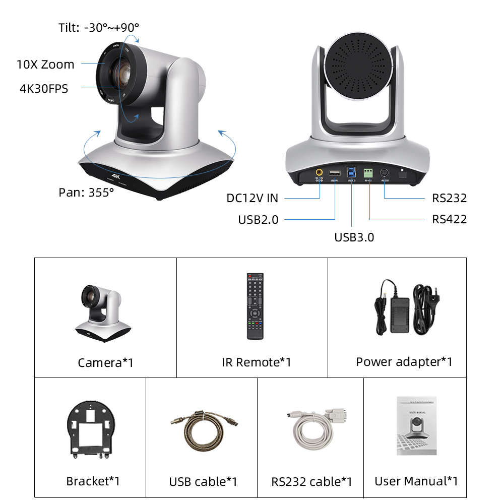 Áp dụng cảm biến 4K chất lượng cao SONY 1/2.7 inch COMS thế hệ mới, có thể đạt được hình ảnh chất lượng cao với độ phân giải tối đa 3840*2160.
