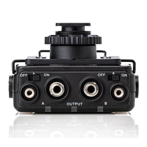 Bộ thu hai kênh, gắn trên máy ảnh được trang bị hai đầu ra âm thanh 3,5 mm. Nó đi kèm với nhiều loại cáp để kết nối với máy ảnh DSLR/không gương lật, máy quay chuyên nghiệp, máy ghi âm, máy trộn và giao diện âm thanh với đầu vào micrô 3,5mm hoặc XLR. Bộ thu có đầu vào mic/đường truyền bên ngoài (có nguồn cắm), cho phép bạn kết hợp mic có dây, bộ trộn hoặc thậm chí là hệ thống không dây thứ hai vào máy ảnh một cách dễ dàng. Nếu máy ảnh của bạn không có giắc cắm tai nghe, bạn có thể theo dõi âm thanh của mình qua đầu ra tai nghe 3,5 mm của bộ thu trong khi ghi để đảm bảo rằng bạn đang thu được tín hiệu rõ ràng.
