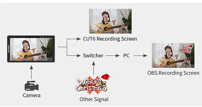 - Kết nối với hầu hết mọi camera thông qua đầu vào HDMI 2.0 và đầu ra video HDMI 1.4 tới màn hình lớn hơn hoặc tới bộ phát không dây. CUT6 đi kèm với đầu vào HDMI 2.0, hỗ trợ tín hiệu 4K 60Hz; Đầu ra HDMI hỗ trợ lên đến 1080p60. Tương thích với máy ảnh DSLR, máy ảnh không gương lật, thực hiện giám sát đồng thời bởi các đạo diễn, nhiếp ảnh gia.