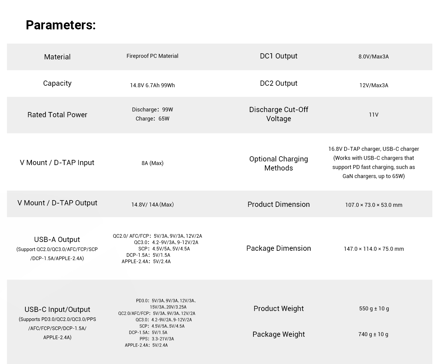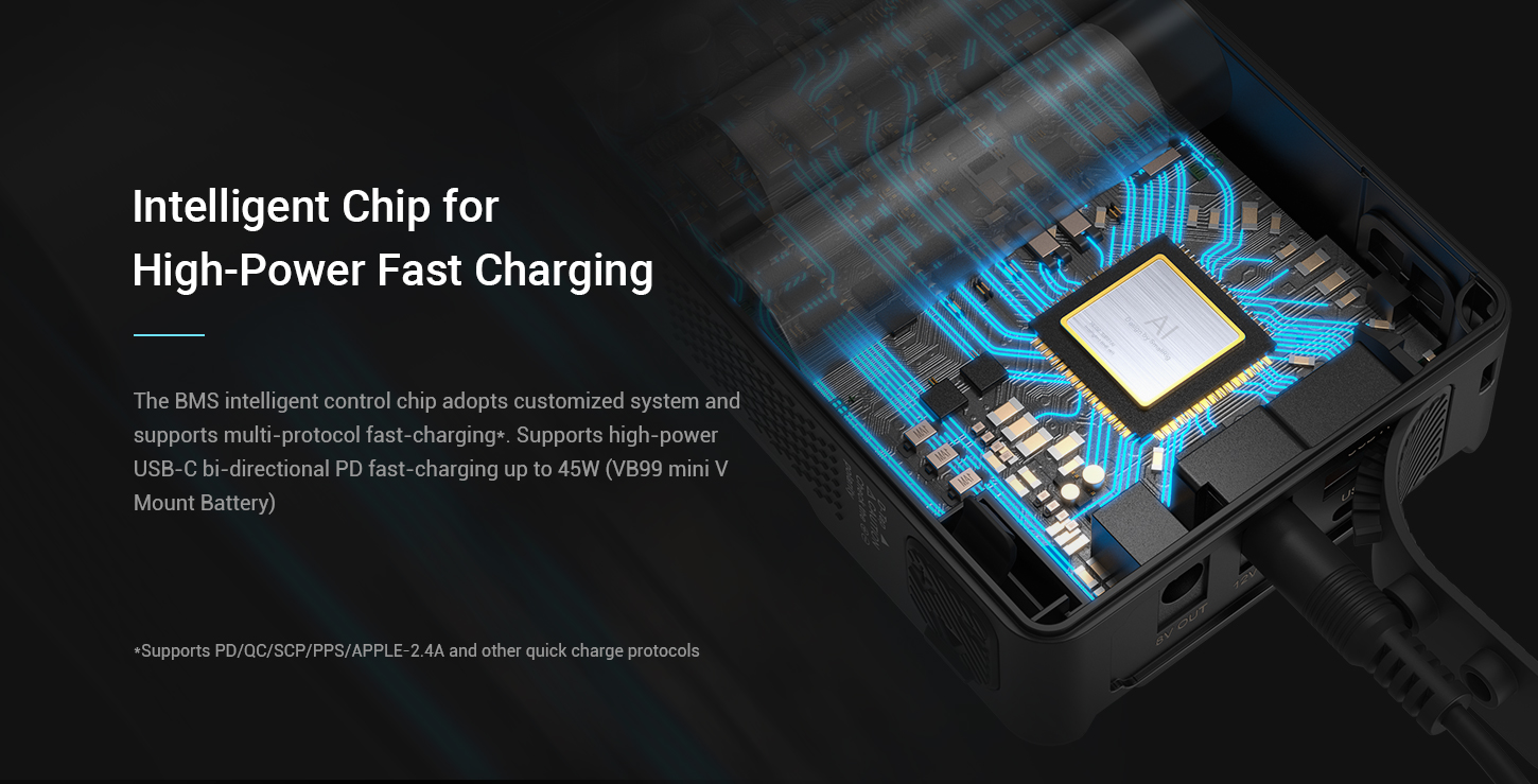 - Pin có Chip BMS thông minh để sử dụng hiệu quả và an toàn: chip BMS tích hợp cao tích hợp sẵn chiếm ít không gian hơn trong khi hỗ trợ nhiều giao thức sạc nhanh khác nhau và sạc nhanh USB-C PD 65W (Tối đa) hai chiều 65W (Tối đa) Sạc nhanh USB-C PD, cũng như tăng điện áp thích ứng / điều chỉnh dòng điện thích ứng, v.v.! - Các giao diện như USB-A / USB-C / D-tap / DC 8V / DC 12V / V Mount cũng được bao gồm để sạc / cấp nguồn hiệu quả cho máy ảnh / máy quay / màn hình / bộ phát video không dây / đèn video / điện thoại di động / máy tính xách tay, v.v. mà không cần sử dụng tấm V-mount để chuyển đổi