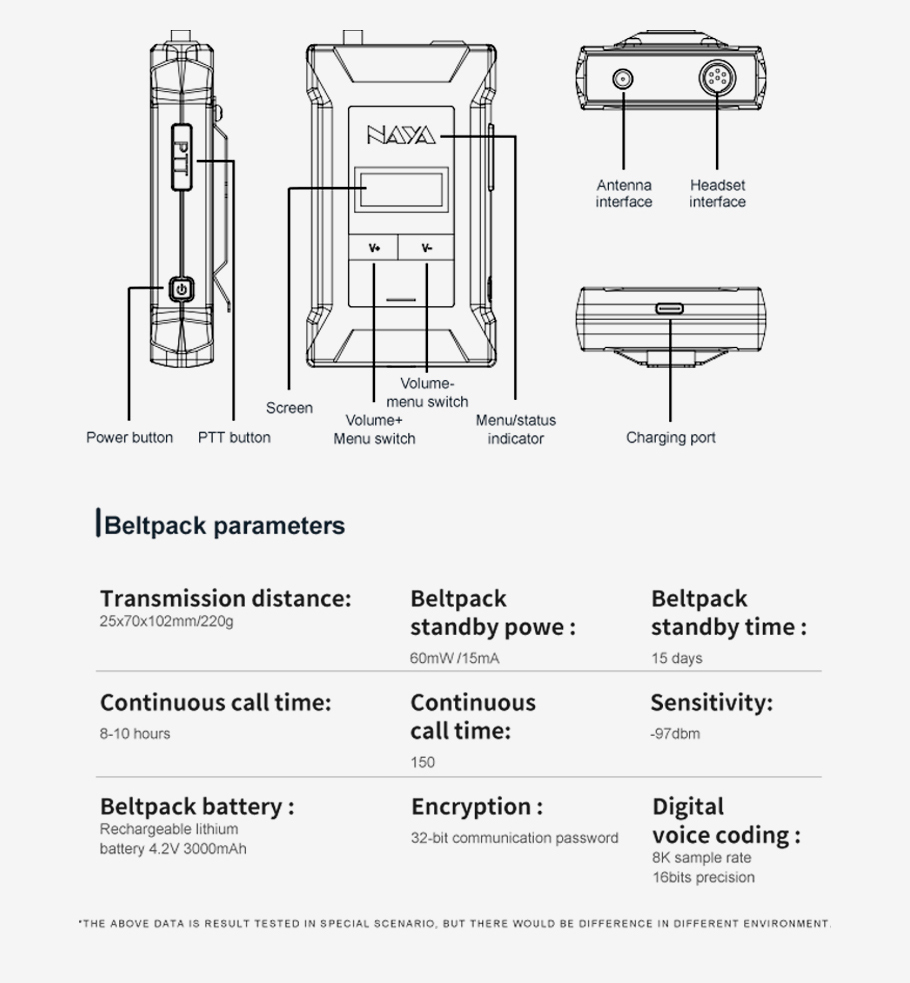 Các thông số kỹ thuật của Beltpack: